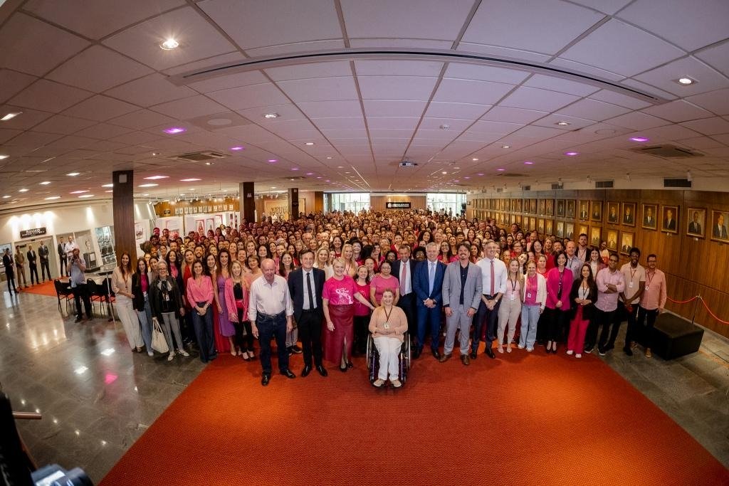 A Assembleia Legislativa promoveu ontem um ato alusivo ao Outubro Rosa, com deputados e servidores reunidos no hall para foto temática. O presidente Júlio Garcia (PSD) destacou a mobilização pela saúde da mulher e lembrou leis já aprovadas, como a que permite às redes femininas de combate ao câncer acessar recursos do Fundo Estadual da Saúde. “Que bom que a sociedade se une em torno desse tema tão importante para que a gente possa construir uma sociedade mais saudável. Parabéns a todos e todas que estimulam a prevenção”, disse o presidente.