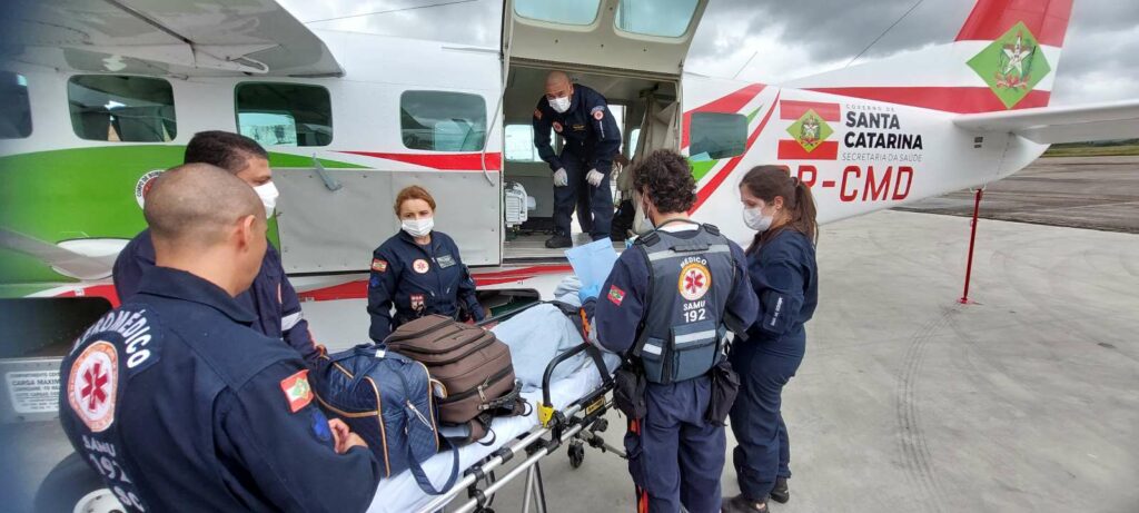 O serviço aeromédico foi implantado em 2005, inicialmente com o helicóptero da Polícia Rodoviária Federal, e passou a contar, a partir de 2010, com o apoio do Corpo de Bombeiros Militar, por meio do helicóptero Arcanjo. Atualmente, o Estado dispõe de cinco helicópteros e dois aviões, baseados em Joaçaba e Florianópolis, que realizam atendimentos e transportes de pacientes. Em 15 anos, foram registrados 13.498 atendimentos com helicópteros e 2.828 com aeronaves.