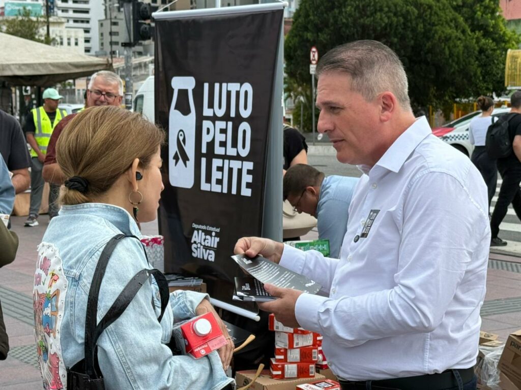 O deputado estadual Altair Silva (Progressistas) protagonizou, ontem, um dia de mobilização em defesa dos produtores catarinenses. Pela manhã, distribuiu 500 litros de leite no Centro de Florianópolis, em um ato simbólico batizado de “Luto pelo Leite”, para chamar a atenção da sociedade para a crise que afeta mais de 20 mil famílias do setor. À noite, comandou uma audiência pública na Alesc que reuniu mais de 700 pessoas, entre secretários de Estado, deputados, prefeitos, vereadores e lideranças rurais, em um debate amplo pela valorização da cadeia leiteira e pela adoção urgente de medidas que garantam preço justo e sustentabilidade ao campo.