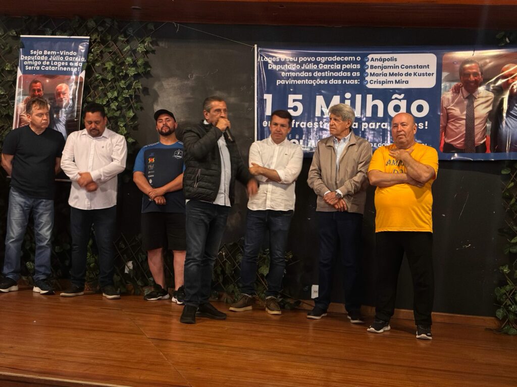 Com forte presença na serra catarinense, Júlio Garcia (PSD), esteve em Lages junto como deputado Camilo Martins e comitiva para prestigiar o evento “Amigos do Polaco” e anunciar investimentos para pavimentação de ruas, solicitadas pela bandada de vetados do (PSD), Composta por Ozair Polaco, Roberto Roque e Sargento Pacheco.