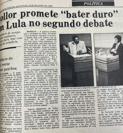 De qualquer forma pairava a ameaça, anunciada publicamente por Collor, de que “bateria duro” no adversário.