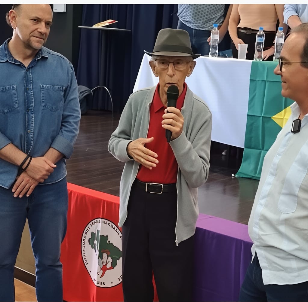 Presidente nacional do PT e ex-ministro Edinho Silva esteve no encontro regional do PT em Joinville e participou junto com Décio Lima de uma homenagem ao primeiro candidato a prefeito de Joinville pelo PT, João Schmidt, 93 anos.