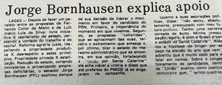 O PFL catarinense acabou, portanto, apoiando o candidato certo, no sentido de que ele foi o vitorioso, mas, o Presidente errado. Nossos votos foram dados ao vencedor, mas não ao melhor Presidente possível na ocasião.