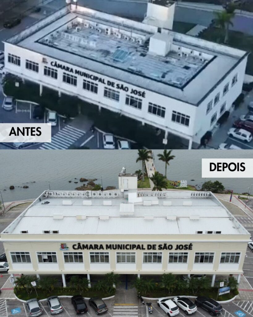 Desde o início de 2025, a Câmara Municipal de São José vem passando por uma série de intervenções estruturais. As ações incluem obras na cobertura, fachada, pintura e outros reparos, com o objetivo de corrigir problemas antigos e adequar o prédio às necessidades atuais do Legislativo.