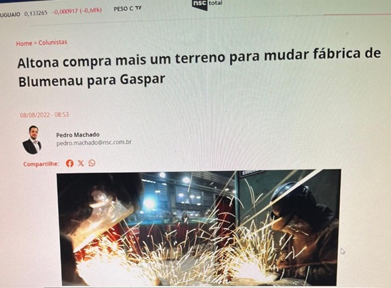 A Eletroaço Altona, por exemplo, talvez a mais complexa daquelas situações devido ao seu ramo industrial, decidiu instalar fora de Blumenau um novo complexo fabril com 50 mil metros quadrados de área construída. Seu destino quase certo é Gaspar onde já adquiriu as áreas necessárias. Esse movimento, segundo um de seus dirigentes, teve como causa imediata um fator: “Não havia mais como crescer em Blumenau”.