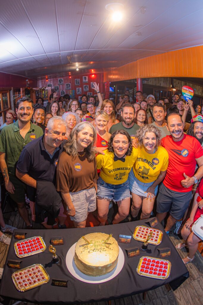 A vereadora de Florianópolis e pré-candidata a deputada federal Carla Ayres (PT) celebrou seu aniversário no sábado (14), reunindo cerca de 200 pessoas em um bar da capital. Ela é uma das apostas do Partido dos Trabalhadores para uma das vagas na Câmara Federal. Entre os convidados, destaque para os deputados estaduais Luciane Carminatti (PT) e Marcos Abreu, o Marquito (PSOL); os vereadores Bruno Ziliotto (PT), Leonel Camasão (PSOL) e Afrânio Boppré (PSOL); o vereador de Garopaba Rodrigo Oliveira (PT) e, de Angelina, Sérgio Costa; além da ex-senadora Ideli Salvatti e da ex-deputada Ângela Albino (PDT), cotada para compor como vice de Gelson Merisio na disputa ao Governo do Estado.