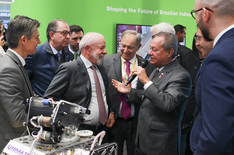 Nesta segunda (20), o presidente Luiz Inácio Lula da Silva e o presidente da Confederação Nacional da Indústria (CNI), Ricardo Alban, visitaram juntos o estande.