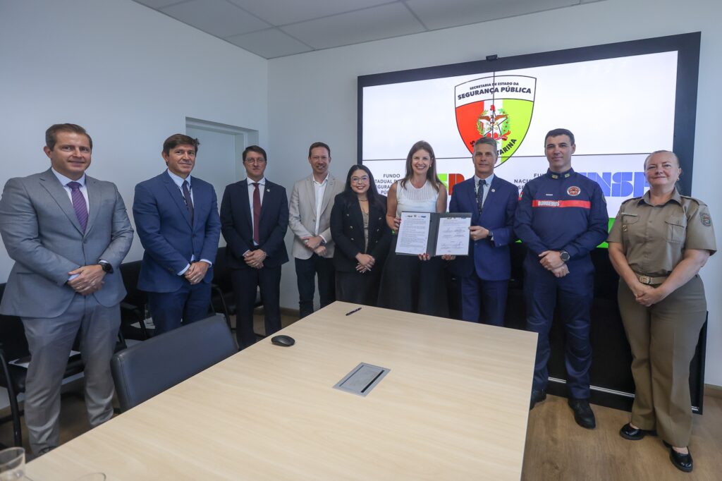A Secretaria de Estado da Segurança Pública de Santa Catarina (SSP-SC) e o Ministério da Justiça e Segurança Pública (MJSP) firmaram, nesta segunda-feira (27), um protocolo de intenções para modernizar a gestão de recursos federais destinados à segurança pública no estado. A iniciativa prevê a integração entre o sistema “Gestão Segura”, do Fundo Nacional de Segurança Pública (FNSP), e o SIGFESP, plataforma estadual de gestão do Fundo Estadual de Segurança Pública (FESP).